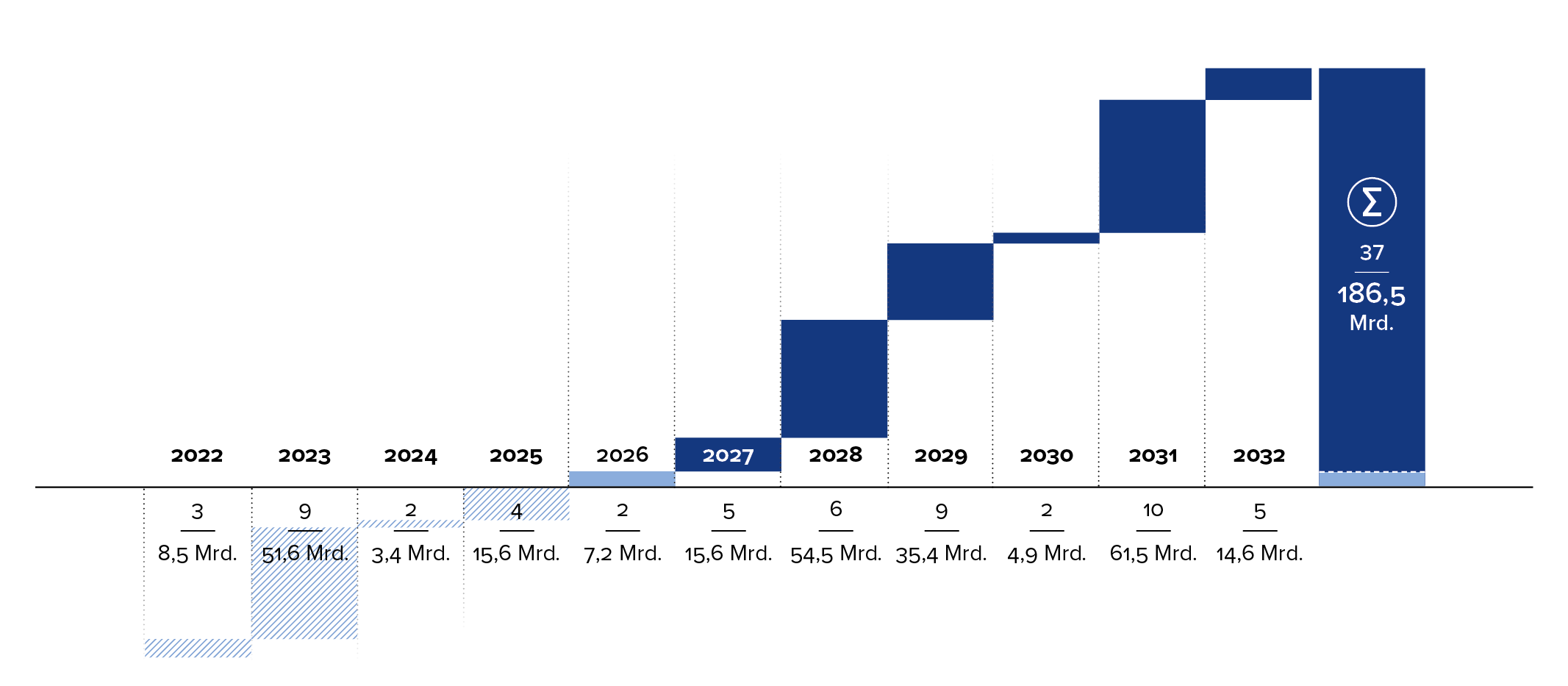 Diese Einsparungen schonen nicht nur die Gesundheitsbudgets, sondern sorgen in der Regel auch dafür, dass mehr Patientinnen und Patienten mit biologischen Wirkstoffen behandelt werden können. So tragen Biosimilars maßgeblich zur Demokratisierung medizinischer Innovationen bei. Diese Entwicklung wird sich noch verstärken, denn in den kommenden Jahren verlieren zahlreiche weitere umsatzstarke Biologika ihre Exklusivität. Bis 2032 sind darunter mehr als 30 Blockbuster-Medikamente, also Medikamente mit einem jährlichen globalen Umsatzvolumen jenseits von 1 Mrd. US$. Zusammengerechnet ergibt das ein Marktpotential von mehr als 180 Mrd. US$ – eine enorme Chance für Biosimilars.5